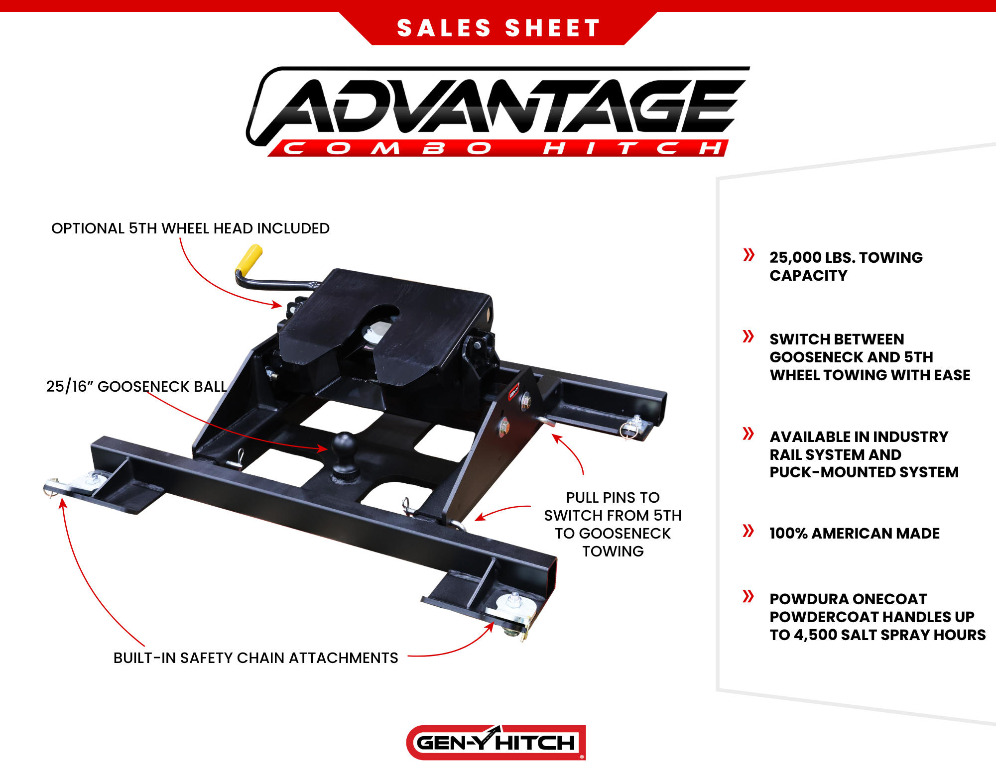 - Tow with either a gooseneck hitch or a 5th wheel hitch