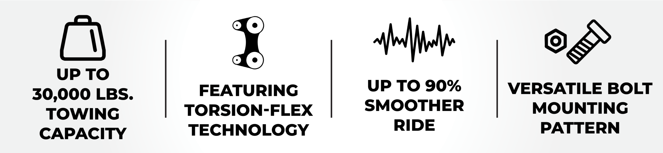 The EXECUTIVE is maintenance-free, with heavy-duty, long-lasting rubber designed to perform reliably over thousands of miles. With models rated for up to 30,000 lbs towing capacity and offering tongue weight ranges between 1,500 and 8,500 lbs, it protects your RV and delivers the best and safest towing experience on the road.